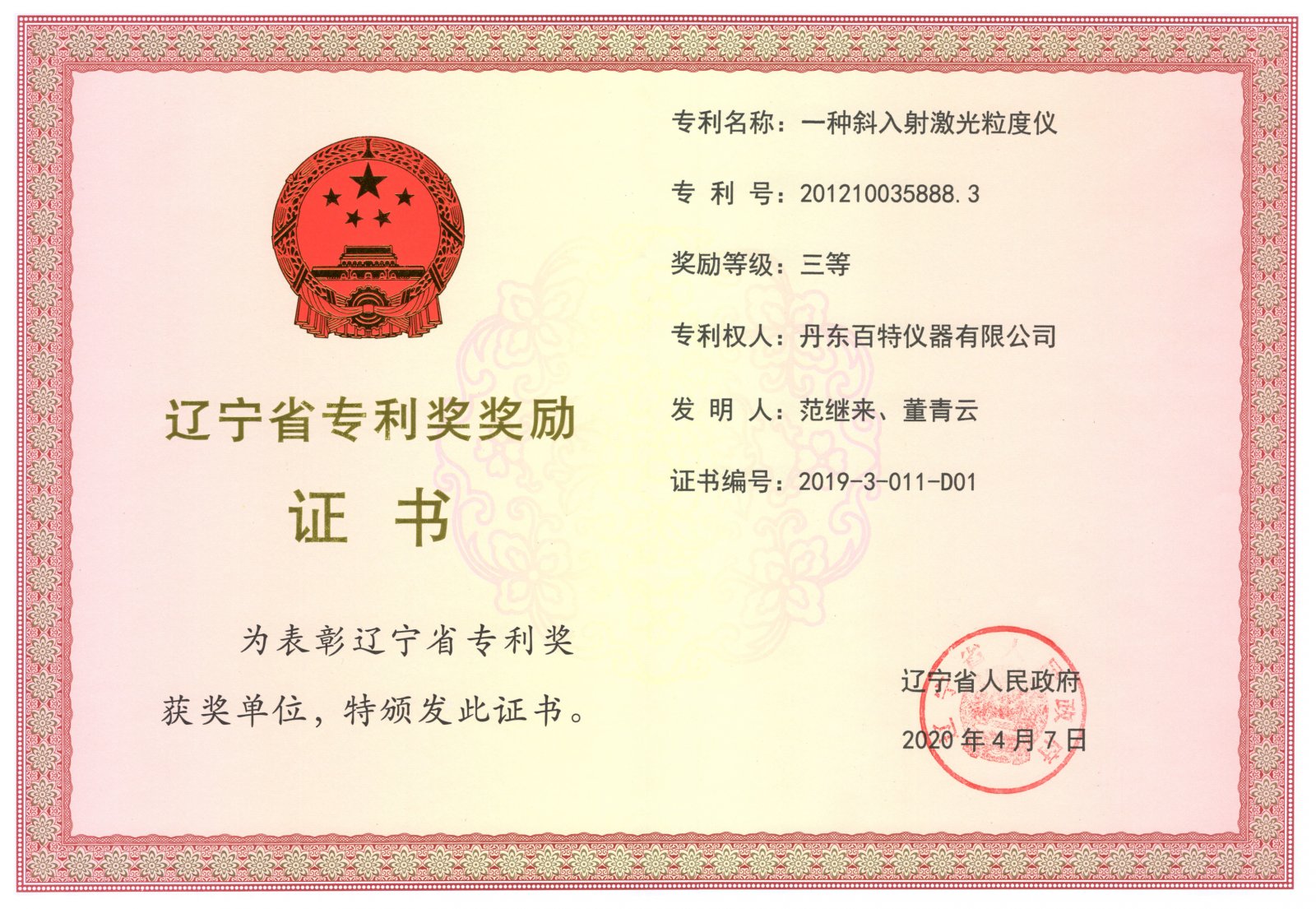 多年來,科技創新一直是丹東百特發展的強勁動力。百特研發中心被評定為遼寧省高性能儀器儀表專業技術創新中心、企業技術中心和工業設計中心,中心擁有研發人員41人,其中博士3人,碩士12人,中高級以上職稱17人;中心擁有70項專利,20項軟件著作權,3項商標權,參與制定7項國家標準;中心承擔并完成了科技部、工信部和省市創新項目16項,并產品獲得了丹東市科技進步一等獎,遼寧省科技進步二等獎,遼寧省專利獎三等獎,中國非金屬礦工業協會科技進步一等獎,中國顆粒學會顆粒測試一等獎等獎項。