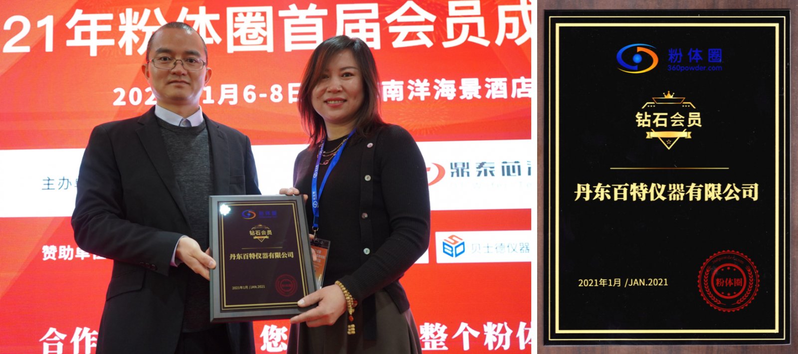 在本次論壇上,主辦方還舉行了粉體圈會員的授牌儀式,丹東百特儀器有限公司以其在行業中的卓越影響力被評為鉆石會員。在新的一年里,百特將與粉體圈及顆粒界的朋友一道,為中國顆粒測試技術更上一層樓,為中國顆粒測試技術趕超世界前列水平而不懈努力。