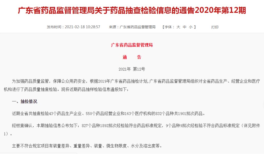 裝量是指藥品的裝填量。近日,廣東省藥品監督管理局對43個藥品生產企業、550個藥品經營企業和163個醫療機構進行抽檢,結果公布的有9個品種9批次藥品不符合標準規定,其中有就有6批次藥品的不合格項目為裝量差異、重量差異,占比高達67%。