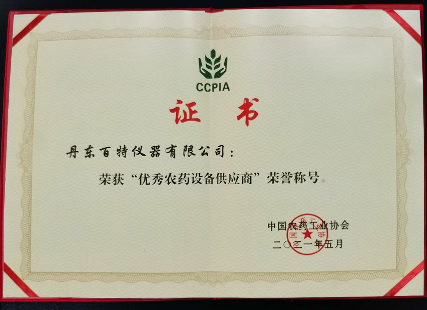 風吹麥浪,雨潤百花,寓意著美好和希望。2021年5月11日,由中國農藥工業協會主辦的第八屆農藥行業經濟運行分析會暨農藥行業排行榜發布會在合肥隆重召開,300多位行業專家和企業家共聚一堂,分享發展成果,探討產業結構完善和企業創新之路。丹東百特受邀參會并榮獲“優秀農藥設備供應商”榮譽稱號,成為本次會議唯一檢測儀器類的獲獎企業。