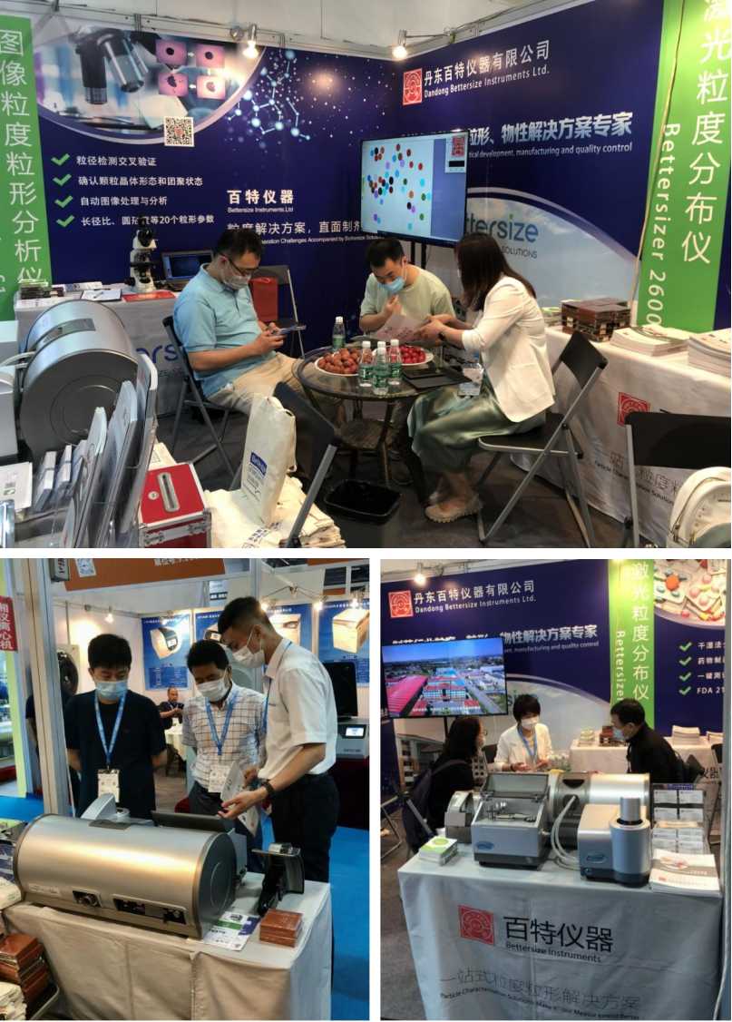 在初夏的美麗羊城-廣州,丹東百特攜百特激光粒度儀Bettersizer 2600,納米粒度電位儀BeNano 90 Zeta,智能粉體特性儀 BT-1001,圖像顆粒分析儀BT-1600參加了為期三天的第86屆中國國際醫藥原料藥中間體包裝設備交易會。此次展會吸引了生物制藥行業上下游眾多企業,同時丹東百特也為制藥行業提供了全方位的顆粒檢測解決方案。