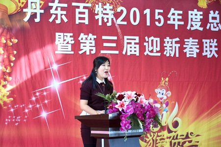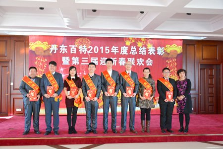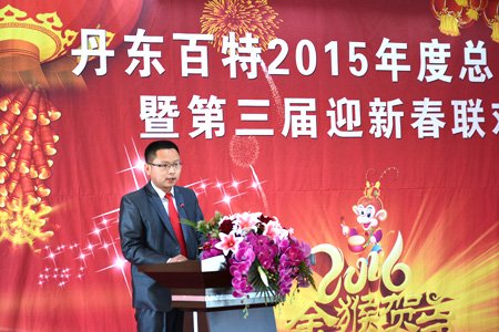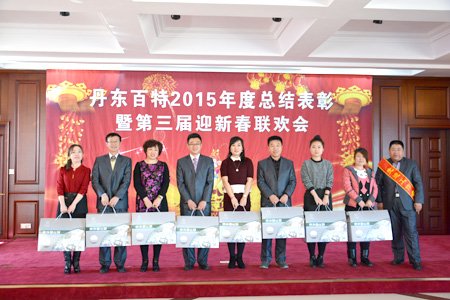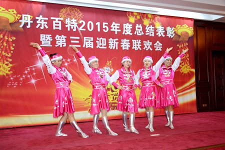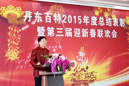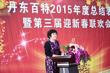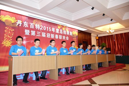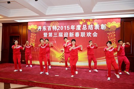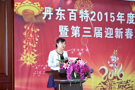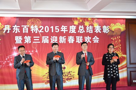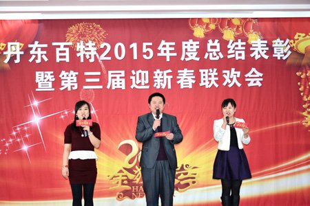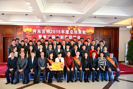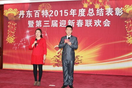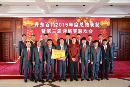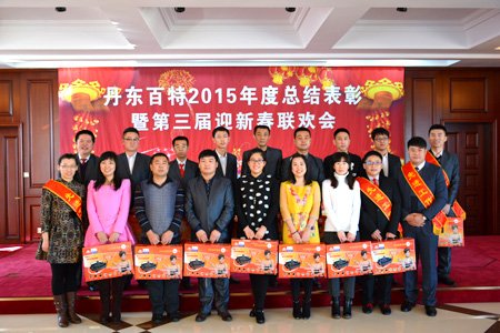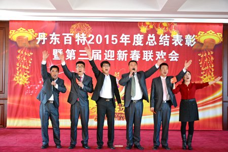 2016年2月4日,丹東百特會議大廳鮮花綻放、春意盎然,全體員工身著盛裝、喜氣洋洋,參加公司2015年度總結表彰大會暨第三屆“迎新春”聯歡會。會議將總結2015年的工作,部署2016年的工作,描繪今后20年的發展藍圖。