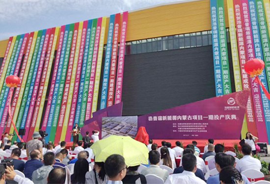 8月17日上午,內蒙古浩普瑞新能源材料有限公司年產40000噸鋰電池正極材料磷酸亞鐵鋰生產項目一期投產儀式在呼和浩特隆重舉行。