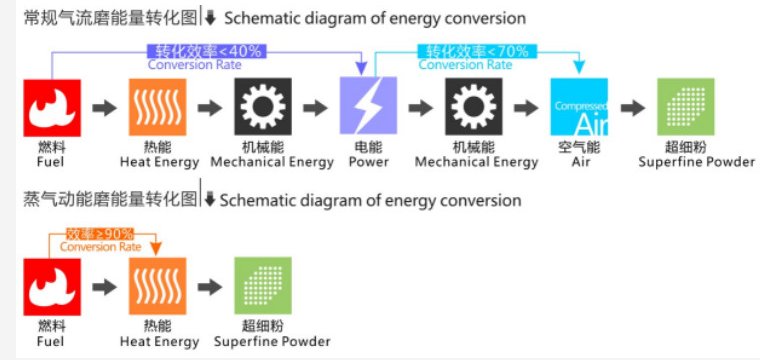 因此,要將工業余熱很好地利用于超細粉體的制備上,就需要研究如何將工業余熱轉化為低品位過熱蒸汽,明確工業余熱轉化為低品位過熱蒸汽的效率,針對具體用戶的工業余熱和加工對象,解決余熱鍋爐選型以及配套的利用工業余熱低成本制備超細粉體的設備選型問題,使整個系統形成很好的匹配。