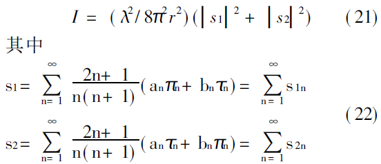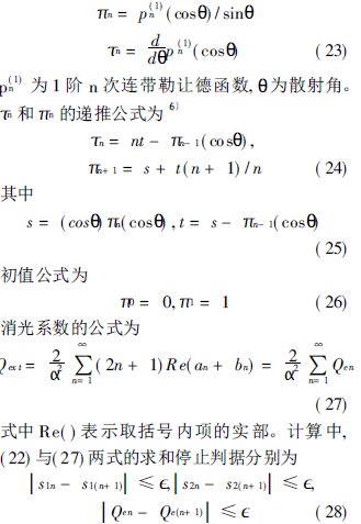 Mie 散射計算的中心問題是計算Mie 散射系數an 和bn,其表達式為[9]