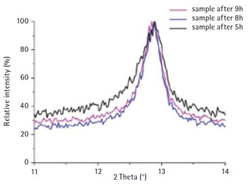 在整個反應過程中合金始終保持微粉化,Emax的溫度沒有超過30℃。經過9個小時的反應后,整個樣品基本消除了不定形態,呈微晶狀態。