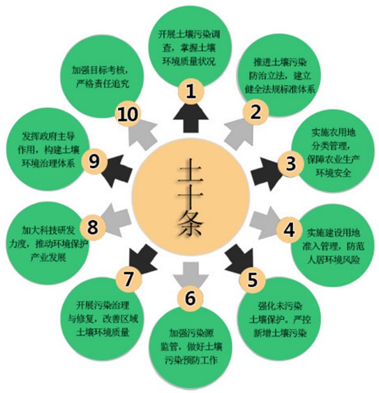 2016年5月28日,繼“氣十條”(2013),“水十條”(2015)出臺之后,《土壤污染防治行動計劃》歷經50余次修改后終于問世,共十條,35項,簡稱“土十條”。根據“土十條”政策,我國到2020年土壤污染加重趨勢將得到初步遏制,土壤環境質量總體保持穩定,到2030年土壤環境風險得到全面管控,到2050年,土壤環境質量全面改善,生態系統實現良性循環。“土十條”還對土壤安全利用提出了具體要求,明確指出重度污染的土壤嚴禁種植食用農產品。