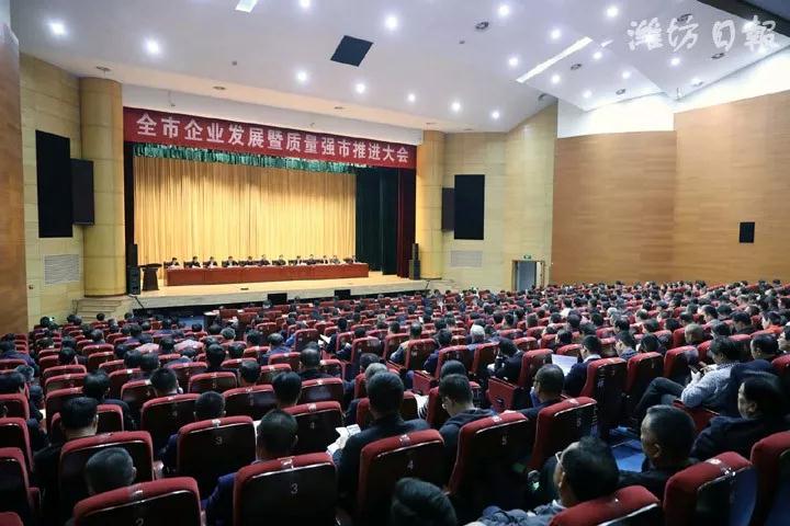 2019年11月15日,全市企業(yè)發(fā)展暨質(zhì)量強(qiáng)市推進(jìn)大會(huì)在濰坊市工人文化宮中心會(huì)堂舉行。會(huì)議深入貫徹中央支持企業(yè)高質(zhì)量發(fā)展的一系列部署,進(jìn)一步落實(shí)省委、省政府支持企業(yè)家干事創(chuàng)業(yè)、促進(jìn)企業(yè)發(fā)展的若干措施,共商企業(yè)高質(zhì)量發(fā)展大計(jì),政企攜手、并肩戰(zhàn)斗,推動(dòng)企業(yè)加快轉(zhuǎn)型升級(jí)、盡快做大做強(qiáng)。市委書記、市人大常委會(huì)主任惠新安出席會(huì)議并講話,市委副書記、市長(zhǎng)田慶盈主持,市領(lǐng)導(dǎo)蘇立科、林紅玉、劉建國(guó)、劉國(guó)偉、王兆輝、李蘭祥、孫明亮、王樹華、范福生出席。