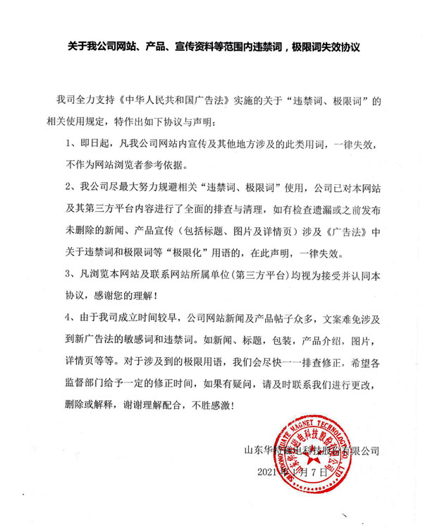 關(guān)于我公司網(wǎng)站、產(chǎn)品、宣傳資料等范圍內(nèi)違禁詞,極限詞失效協(xié)議