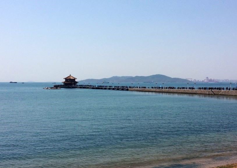 首先參觀的是青島的標志性建筑--棧橋,位于青島中心城區的南部海濱,是一條440米長的海上長廊,從陸地延伸入海中。棧橋建于清光緒年間,一直以來被視為青島的象征。棧橋曾是青島最早的軍事專用人工碼頭。這里有一座具有民族風格的八角亭閣,定名回瀾閣。