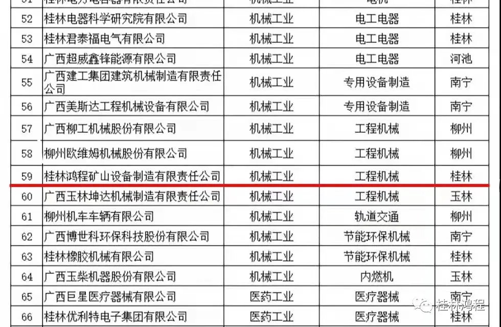 近日,自治區(qū)工業(yè)和信息化廳公布第一批廣西工業(yè)龍頭企業(yè)名單,共105家企業(yè)入選。其中,鴻程成為桂林21家企業(yè)唯一一家工程機(jī)械行業(yè)上榜企業(yè)。