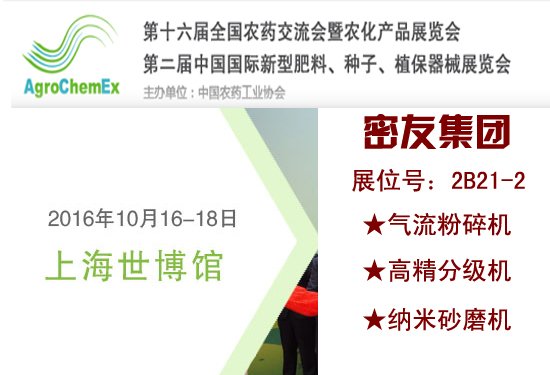第十六屆全國(guó)農(nóng)藥交流會(huì)暨農(nóng)化產(chǎn)品展覽會(huì)將于2016年10月16-18日在上海世博館舉辦。