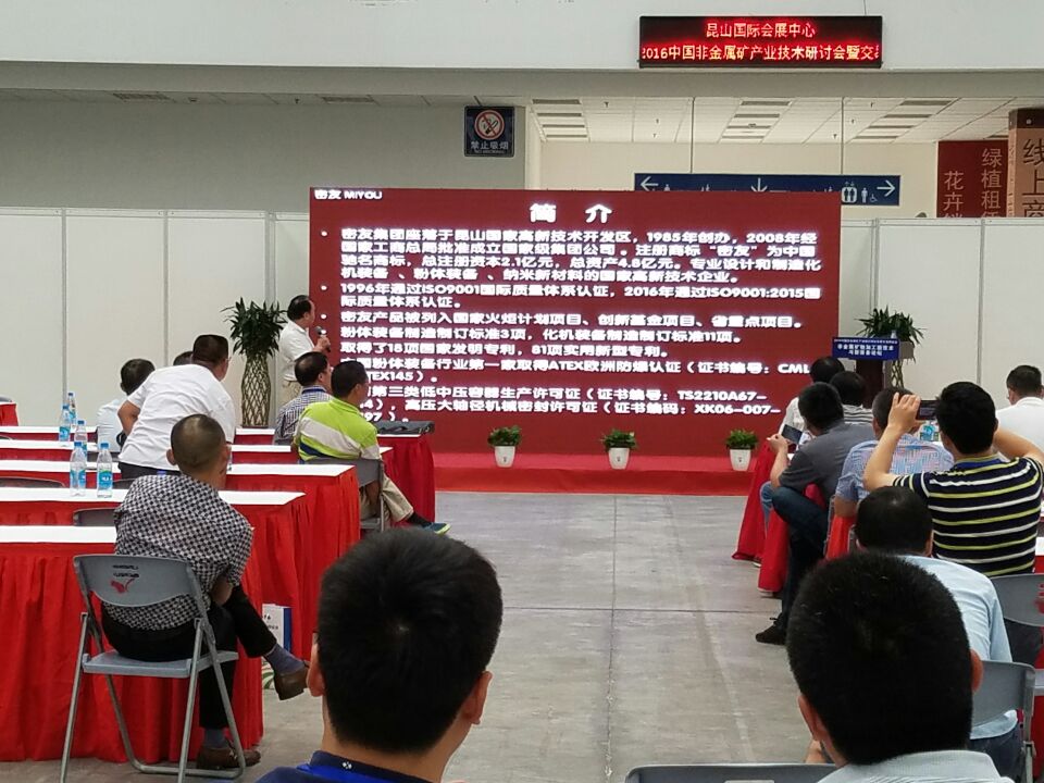 江蘇密友粉體新裝備制造有限公司作為支持單位參與的2016中國非金屬礦產業技術研討會于8月27至29日在江蘇昆山國際會展中心盛大召開。密友董事長吳建明先生在研討會上就特殊粉體深冷粉碎裝備開發與應用狀況、大型粉體分級機的技術進展·標準制定與產業應用情況、粉塵防爆裝備開發與技術認證發展狀況和參會嘉賓一同分享經驗。