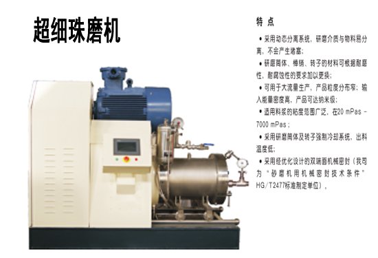 超細珠磨機適用于涂料、油漆、農(nóng)藥、非礦等物料的超細分散研磨,可以改變筒體裝珠量,以滿足各種不同的物料的需要,有強力的冷卻系統(tǒng),用微型的研磨介質(zhì)研磨可達到高品質(zhì)的要求,研磨白料不會發(fā)生發(fā)灰現(xiàn)象。
