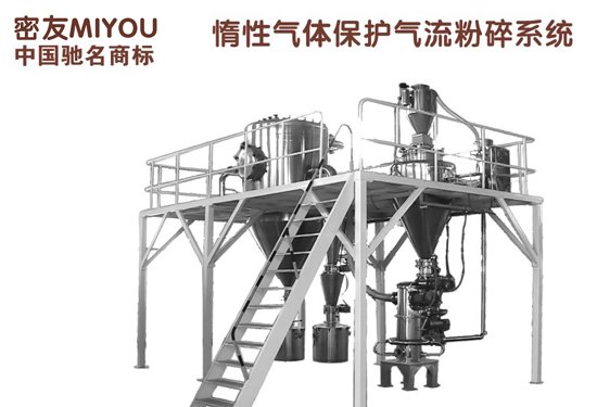 惰性氣體保護超微粉碎系統(tǒng)是采用惰性氣體作為氣流粉碎研磨介質(zhì)實現(xiàn)干式物料的超微粉碎,使用氮氣或其他惰性氣體作為粉碎工質(zhì),氣體循環(huán)使用,損耗率低,主要用于易燃、易爆、易氧化物料的氣流粉碎。該系統(tǒng)中的粉碎過程的控制技術(shù)在國內(nèi)乃至國外,均處于領(lǐng)先地位。目前該系統(tǒng)已經(jīng)廣泛運用于維生素