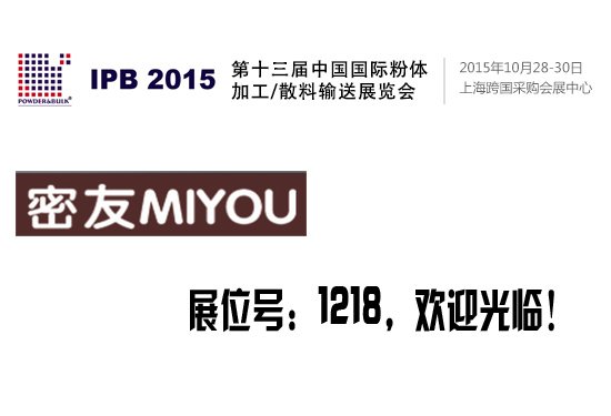 IPB 2015第十三屆中國國際粉體加工/散料輸送展覽會將于2015年10月28-30日在上海跨國采購會展中心舉行。密友集團粉體裝備公司受邀參展,展位號:1218。屆時,有200多家國內外粉體領域相關企業同臺競技,展示最新技術及產品。