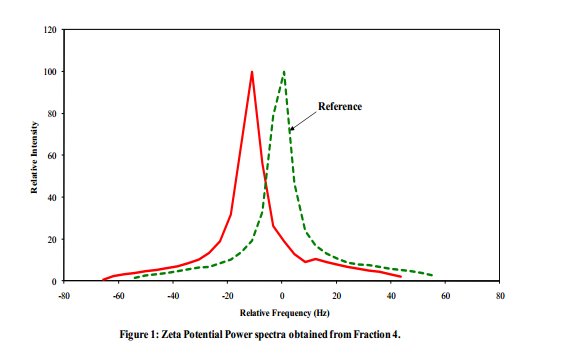 Zeta 電位已用于測量膠體分散的穩定性。其基礎是,Zeta電位與粒子表面的電荷成正比。Zeta電位越大,這些粒子之間的排斥力就越強。如此巨大的排斥力不斷將粒子從隨機碰撞一起擴散,形成聚合。Zeta 電位測量可用于其他應用。在這篇論文中,Zeta電位用于測試一種將血液分離成各種分數的儀器。紅血球的表面電位比白血球大。觀察到,隨著白血球濃度在每個分數的增加,平均Zeta電位降低。