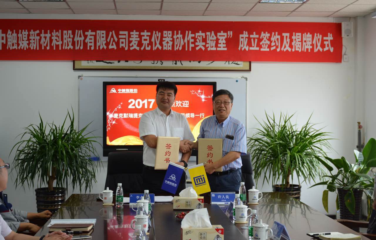 六月初夏,海風徐徐。在地處美麗渤海之濱的大連,中觸媒新材料股份有限公司與美國麥克儀器公司聯合實驗室舉行成立簽約暨揭牌儀式,中觸媒新材料股份有限公司總經理李永賓先生、麥克默瑞提克(上海)儀器有限公司總經理許人良博士簽訂實驗室協作協議并為協作實驗室揭幕。