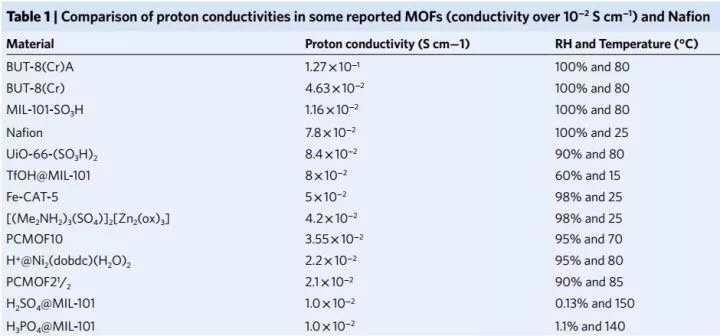 表1. 各種MOF和Nafion膜的質(zhì)子傳導性對比