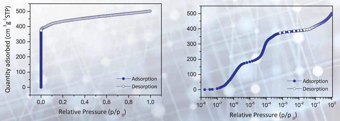 比表面積和孔體積:該參數可以確定氣體存儲等應用的容量。增加比表面積可以最大限度地提高存儲容量,從而有助于開發用于有毒氣體和/或能量儲存的低壓大容量解決方案。
