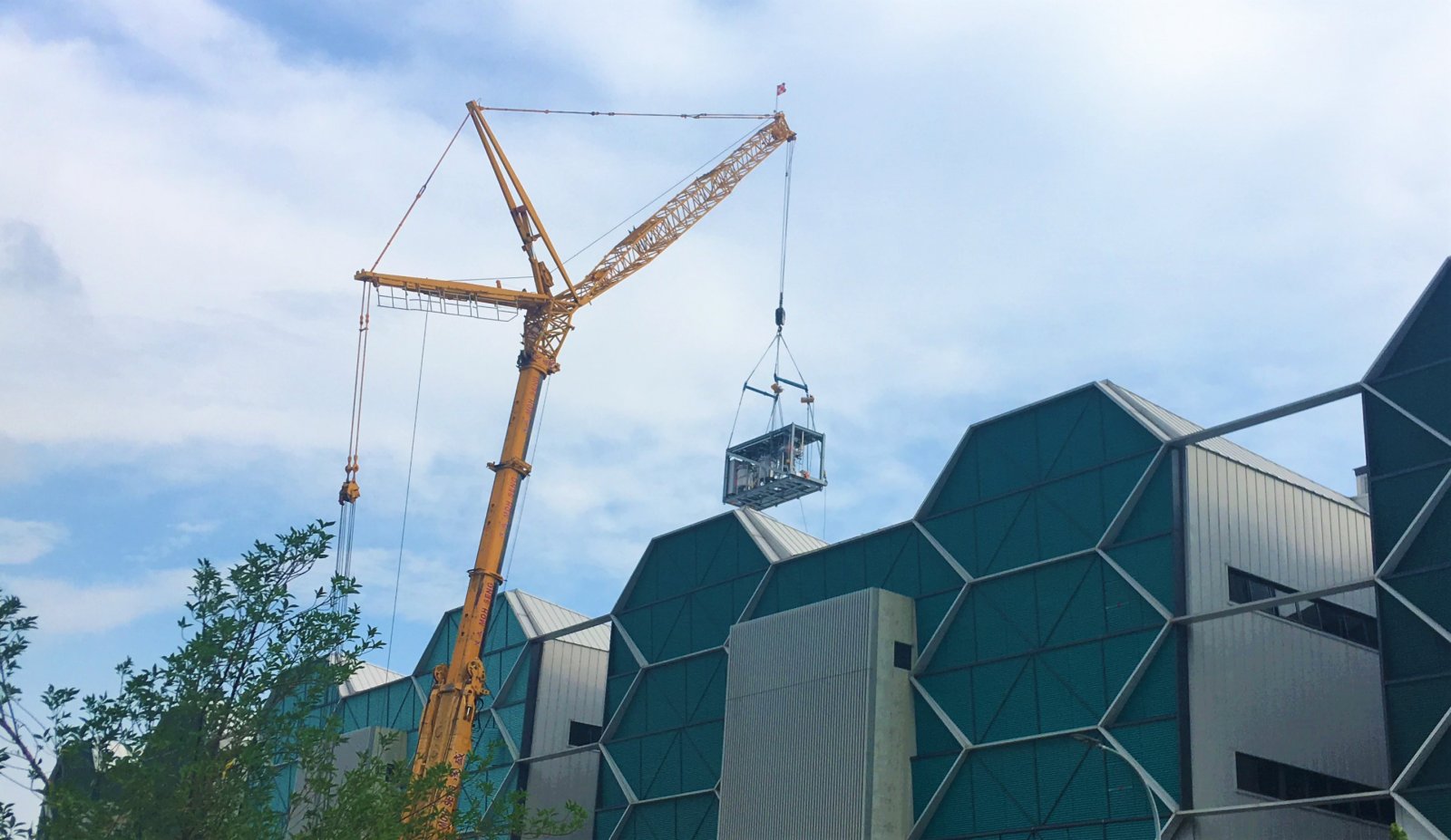 通過(guò)起重機(jī)將模塊移動(dòng)到建筑物中