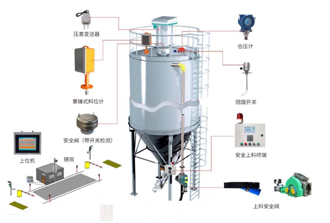 用戶也可增加壓差變送器、倉壓計、帶狀態反饋的倉頂安全閥,構成帶有除塵器及倉壓診斷功能的安保智能系統。