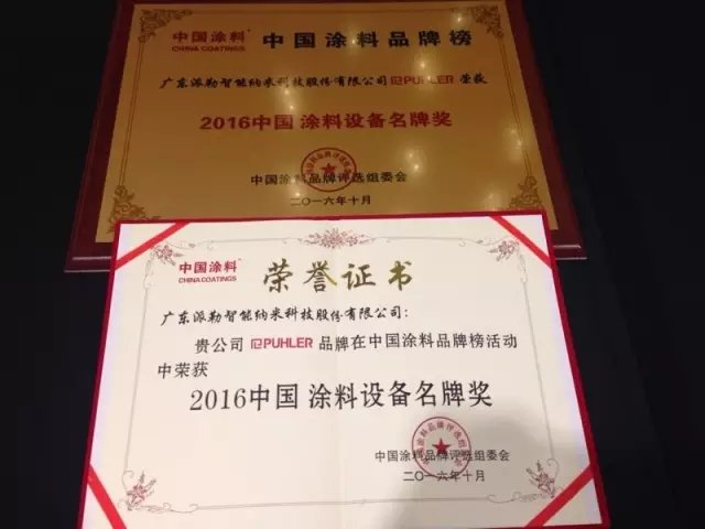 依據涂評委(2013)評字第001號《“中國涂料品牌評選”管理辦法》和“2016中國涂料品牌榜評價基本原則”,綜合各評審專家意見,派勒智能"PUHLER"榮獲“2016中國涂料裝備名牌獎”。