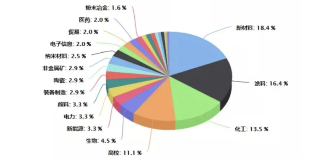 Cnpowder.com.cn網有統計納米砂磨機應用領域分布圖