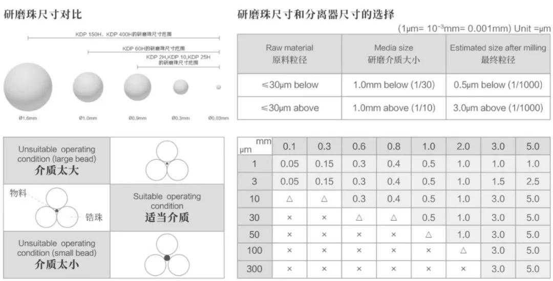第二,研磨介質選擇同樣十分重要,對研磨效率起決定性的作用。因此在選取的過程中需要慎重考慮。在早期研磨中,介質一般選取的是國產的釔穩定氧化鋯珠。對于目前來說,大部分企業選取日本全進口氧化鋯球、氧化鋁球為主,以下為選擇研磨介質技術參照。
