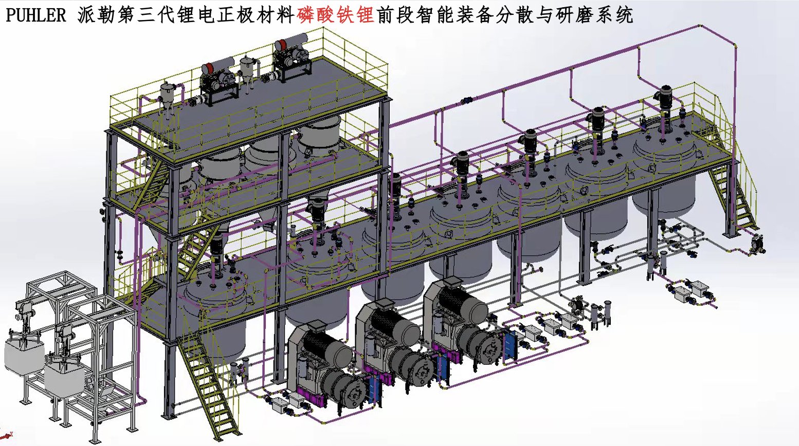 一、磷酸鐵鋰生產線項目配料、分散&研磨工藝流程: