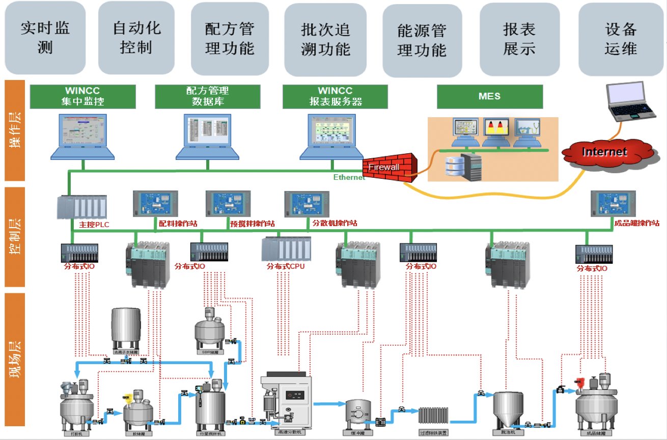 集中數據采集與監控系統(SCADA系統)是制造執行系統(MES系統)的一個最主要的子系統,采用開放的標準網絡通信及三級分布式網絡架構,具備當今先進的工業以太網和現場總線技術,從現場各工段控制站采集實時生產數據實現集中顯示和數據歸檔,并實現對各工段工藝設備進行回路控制、參數調節及信號報警,是生產管理不可缺少的工具。 SCADA系統著重效率生產管理效率,減輕管理人員負擔,實現生產管理自動化與現代化。