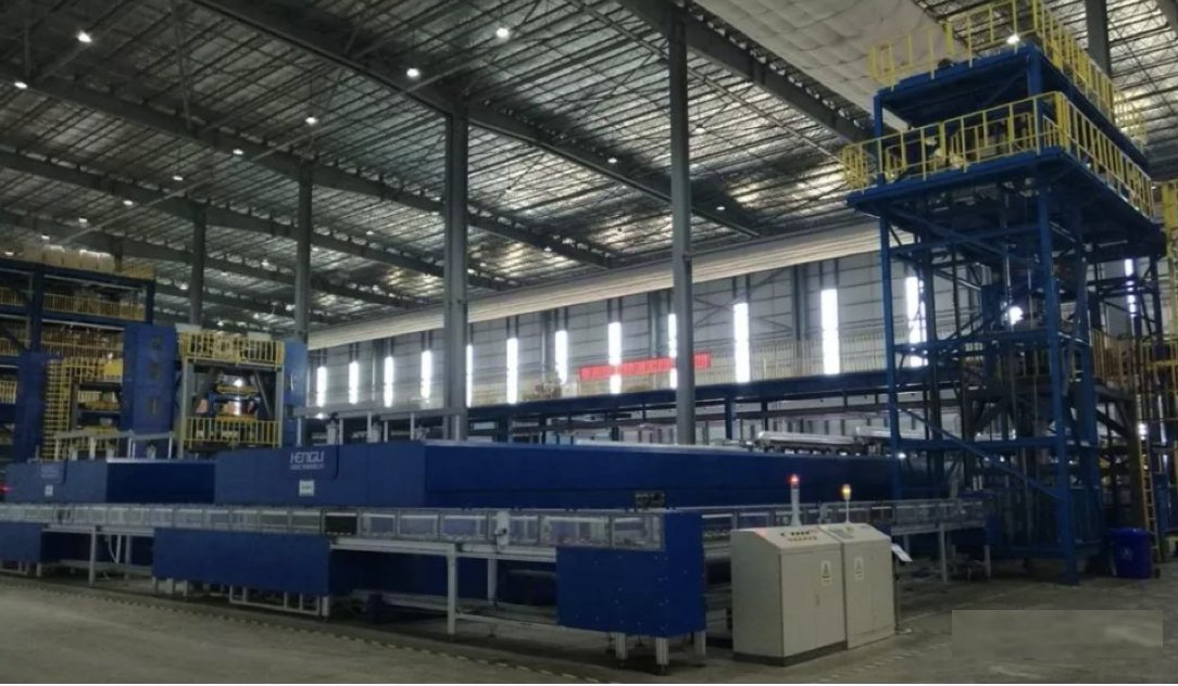 窯爐自動線系統通過氣力輸送系統將微塵物料從噴霧干燥系統輸送到自動線中轉罐,定量向自動線匣缽灌裝物料,匣缽通過自動線定位、封蓋后輸送至窯爐入口,窯爐通過二次氮封隔絕空氣,物料經過預熱、升溫、恒溫燒結實現碳包覆處理,然后通過水冷降溫,二次氮封后,匣缽由窯爐出口回到自動線,匣缽通過自動線定位、取蓋后輸送到翻轉卸料裝置進行卸料,匣缽通過自動線定位/清掃后回到中轉罐供料位置進行循環。