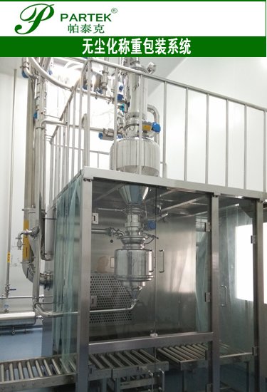 粉體生產包裝線:粗碎機+小袋投料站+移動料倉+錘式粉碎機+臥式旋風篩分機+稱重包裝機,從大塊粉料到粉體包裝的整條生產線是帕泰克優先推行的粉體處理設備,整條生產線實現了無菌化無塵化自動化的生產包裝。