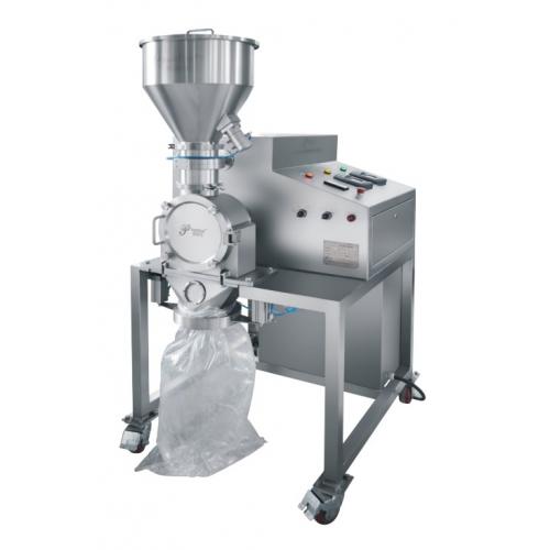 通過轉閥將物料均勻地輸入粉碎包內,在高速旋轉粉碎刀的破碎(剪切和碰撞)作用下,把物料迅速粉碎至所需之粒度。