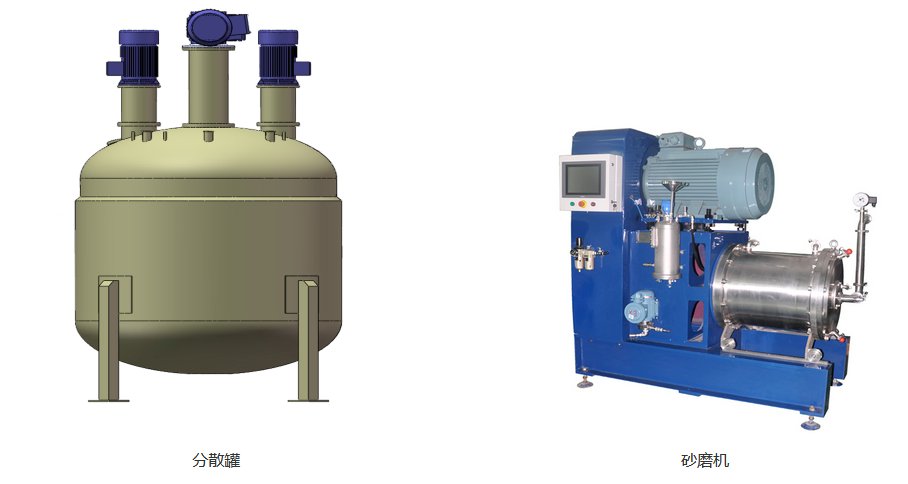 2.2 納米研磨系統(tǒng) 納米研磨系統(tǒng)采用混合、分散與濕法研磨技術(shù),配套混合設(shè)備、分散設(shè)備、研磨設(shè)備,原材料投入混合罐混合完成后自動打入分散設(shè)備進(jìn)行分散,然后通過研磨設(shè)備將物料研磨達(dá)到相關(guān)技術(shù)要求。