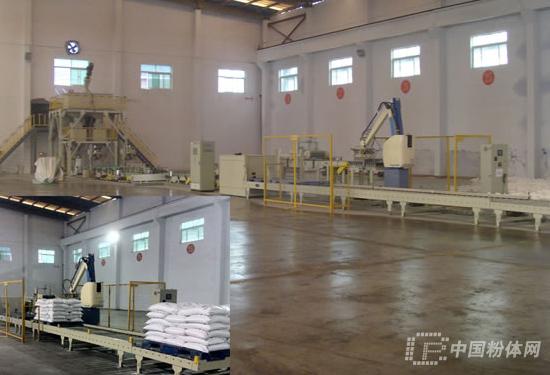該生產(chǎn)線由自動上袋系統(tǒng)、定量自動包裝機、封口裝置、輸送機、倒包機構、重量復檢機、剔除機、整形機、噴碼機、碼垛機器人、托盤庫、滿垛整形機、纏繞機等設備組成,可以完成粘性粉體、超輕細粉體及普通物料的全自動定量包裝碼垛生產(chǎn)。