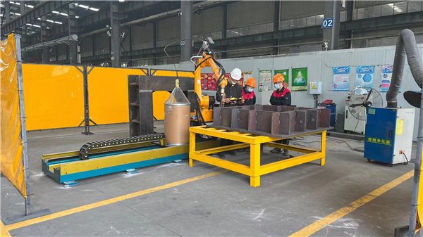 為持續提升公司智慧制造水平,公司成立焊接機器人專項工作組,并立項公司重點科研開發項目,詳細制定各階段計劃。該項目由公司生產部、設計部等多部門聯合研究開發,歷經供應商考察、立項、評審、簽約等各項流程,目前首臺焊接機器人工作站已完成安裝調試,并順利完成限位殼體、分離器電機底座、主電機底座、主減速機底座等鉚焊件的試焊工作。