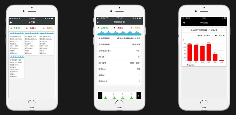 ①掌上監(jiān)控:隨時(shí)隨地查看除塵器、氣包、脈沖閥的運(yùn)行狀態(tài)