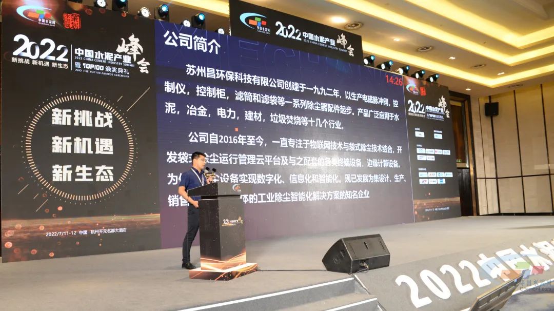 7月11-12日,由中國水泥網舉辦的“2022中國水泥產業峰會暨TOP100頒獎典禮”在杭州召開。蘇州協昌環保科技股份有限公司作為國內一家在煙塵治理行業、智能化解決方案領域有卓越成就的企業,受邀參與此次會議。