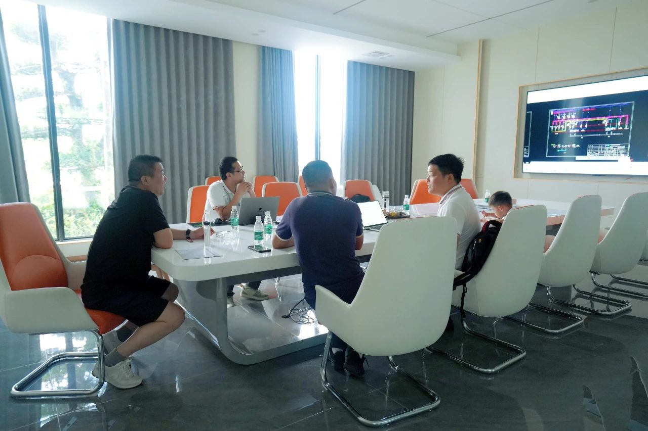 走訪中朱總給客戶詳細(xì)介紹了瑯菱在整廠仿真規(guī)劃、建造、供應(yīng)鏈管理、生產(chǎn)柔性快反等方面積累的強大優(yōu)勢。