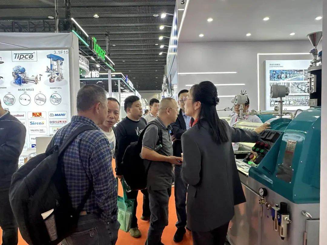 為期三天的展會,涂料企業的技術骨干、采購負責人圍聚在這些設備周圍,眼神中滿是驚喜與期待。不時與瑯菱專業技術團隊深入交流操作細節、設備應用細節、定制化方案,還不時與身旁來自行業不同環節的專家學者、企業精英分享心得,碰撞出思維的火花。