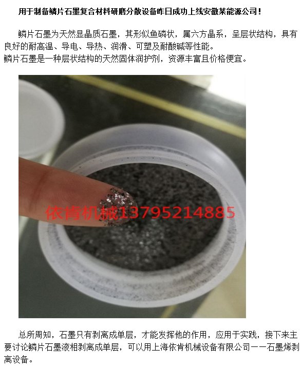 用于制備鱗片石墨復合材料研磨分散設備昨日成功上線安徽某能源公司!