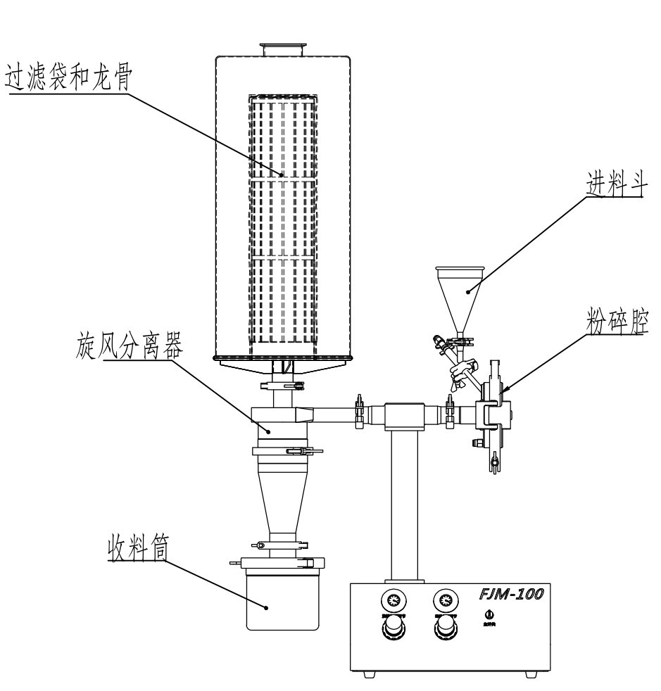關(guān)鍵詞:小型氣流磨;旋風(fēng)分離;物料收集