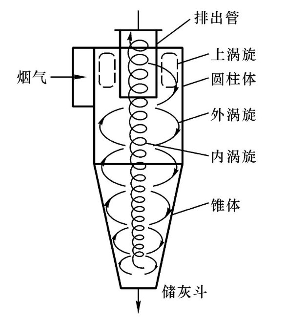 進(jìn)入旋風(fēng)分離的氣體,大部分沿著內(nèi)壁,由上向下做外螺旋運(yùn)動(dòng),此時(shí)旋風(fēng)分離器的軸心處氣壓較低,錐體底部的一部分氣流會(huì)帶著細(xì)小的顆粒向上沿著軸心旋轉(zhuǎn),形成內(nèi)螺旋,到達(dá)排氣管后,沿排氣管排出。