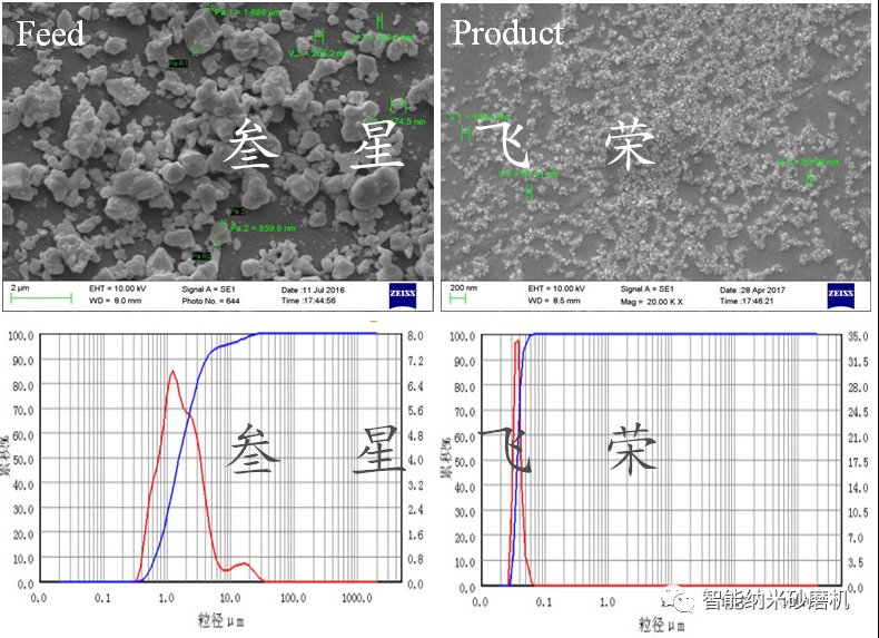 叁星飛榮獨立自主研發生產的具有獨立知識產權的立式無軸封無篩網砂磨機為氧化鋯超細粉體的機械法制備提供了一種行之有效的解決方案,并可以滿足上述對氧化鋯粉體的要求。我公司采用SPT30W生產型設備對山東及廣東某公司提供的釔穩定四方相氧化鋯原料進行了超細研磨工業化實驗驗證。