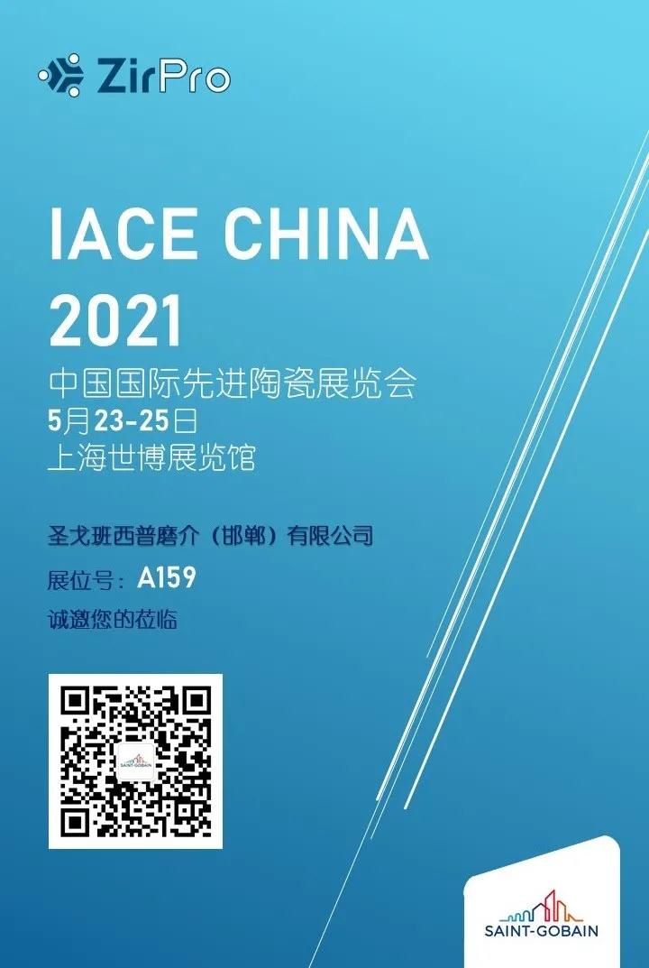 5月23-25日,在即將到來的中國國際先進陶瓷展覽會(IACE China 2021)上,圣戈班西普磨介將攜主營產品亮相展會(展位號A159),為客戶提供專業全面的陶瓷材料解決方案,熱切期待您的蒞臨。
