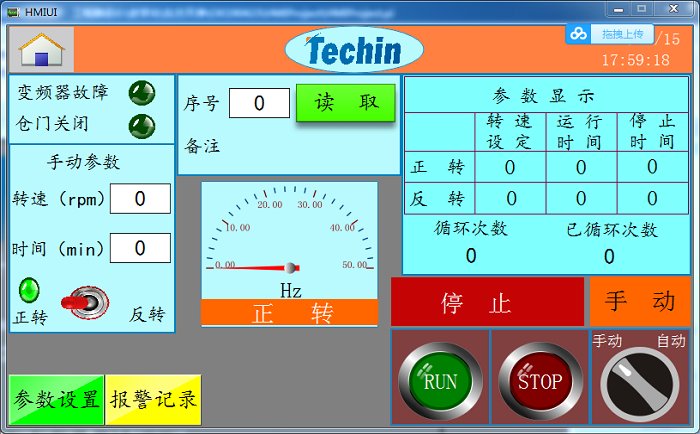 控制系統(tǒng):采用具有程序設置功能的變頻調速控制,可實現(xiàn)連續(xù)單向、連續(xù)換向、定時單向、定時換向四種方式的程控運行。