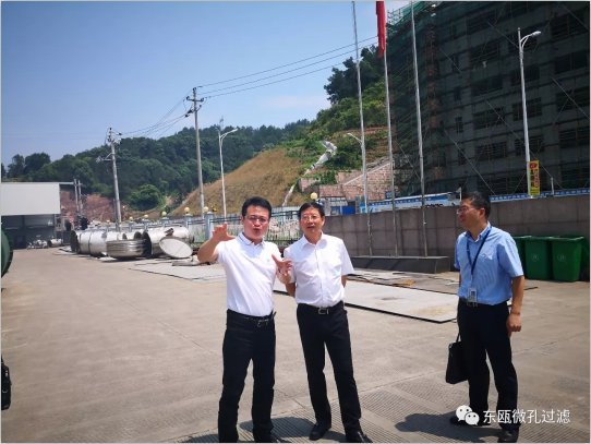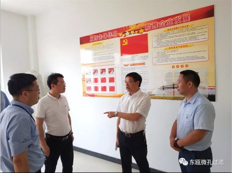 方健忠部長一行參觀了公司生產車間,詳細了解企業生產、發展情況,宋志驥總經理陪同介紹,并向方健忠部長匯報了浙江東甌過濾公司的發展歷程、生產現狀、創新環境、創新人才、科技發展和近年發展成績等;公司黨建、工會等方面工作;公司二期項目的總體規劃、布局設計、工程建設及推進落實情況。