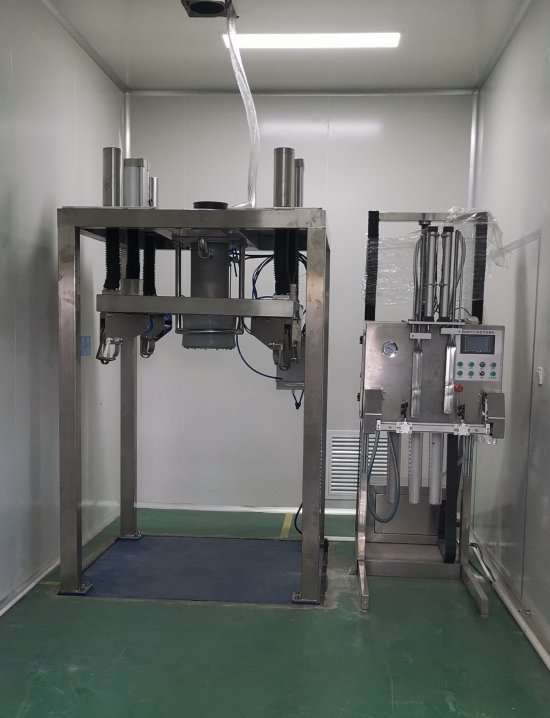 采用自流失重力給料結構,結合高精度稱重傳感器。灌裝時只需人工掛袋,給定信號后,便可完成自動夾袋、灌裝、計量、滿稱時自動停機、松袋的工作循環。
