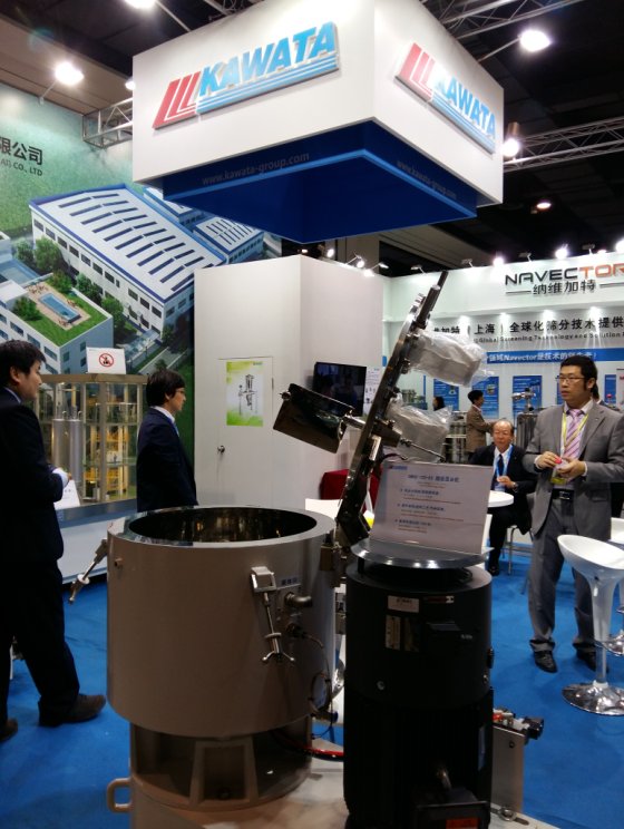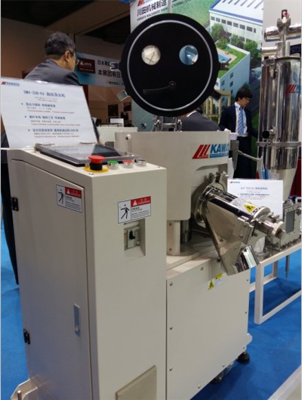 川田上海此次帶來的超級混合機有SWG-KS-100超級混合機、SMV-20B-KS超級混合機、實驗室用超級混合機。當然,市場成熟產品風冷式冷水機也在展示現場。